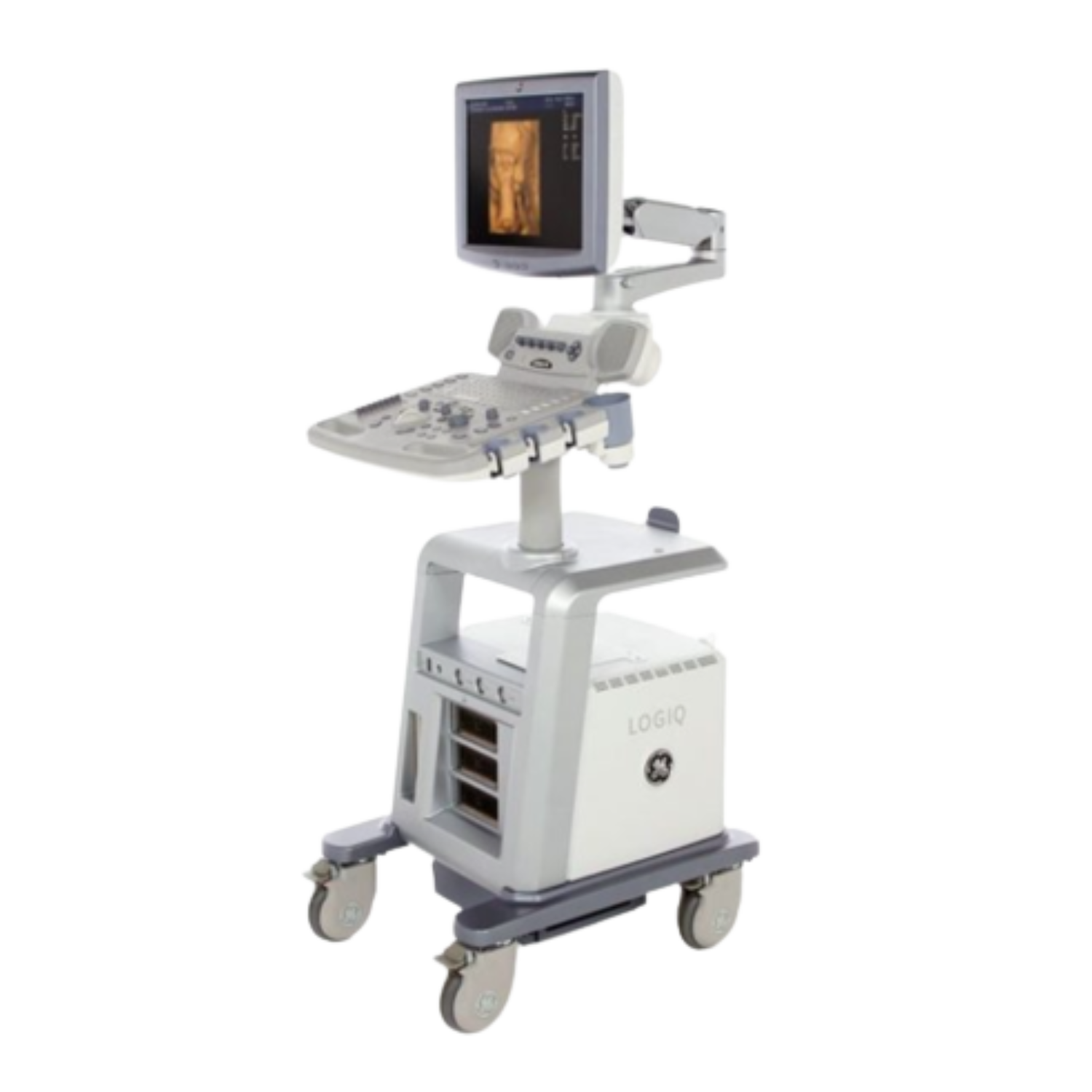 The GE Logiq P5 ultrasound system provides high end imaging capability in a mid range affordable system. A full range of broadband transducers including 4D options make the P5 a perfect fit for a private practice office setting.